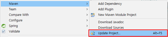 이제, 프로젝트를 우클릭하고 아래와 같이 'Update Project'를 선택한다.