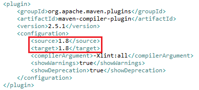 두 번째로, 'maven-compiler-plugin' 부분의 'configuration'의