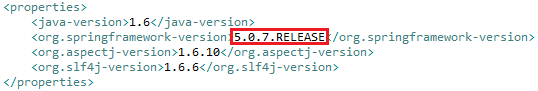 첫 번째로, 'org.springframework-version' 부분을 5.0.7 버전으로 수정한다.