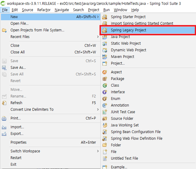 'Spring Legacy Project' 메뉴를 이용해서 프로젝트를 생성하면 편리하긴 하지만,